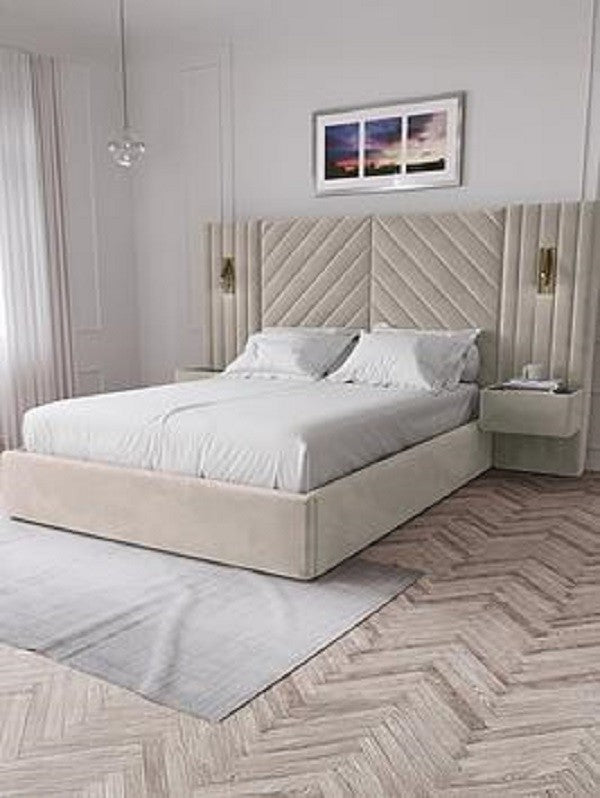 Torrance King Bed Built In Side Tables Lights Cream Frame Only Bedroom UK
