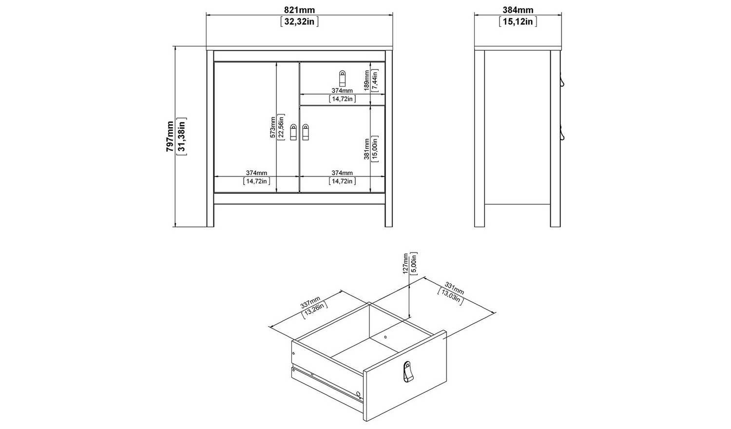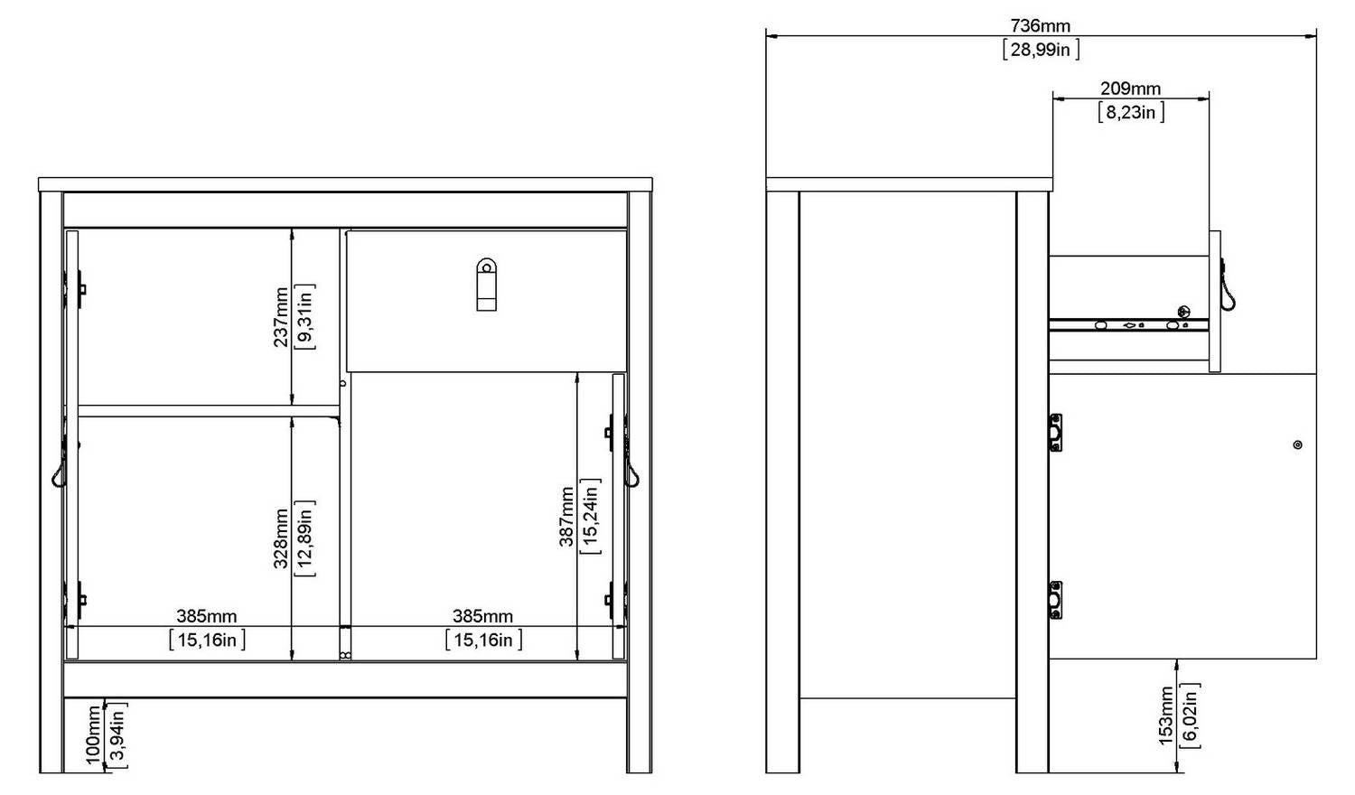 Tvilum Madrid 2 Door 1 Drawer Sideboard Black Storage Cabinet Furniture