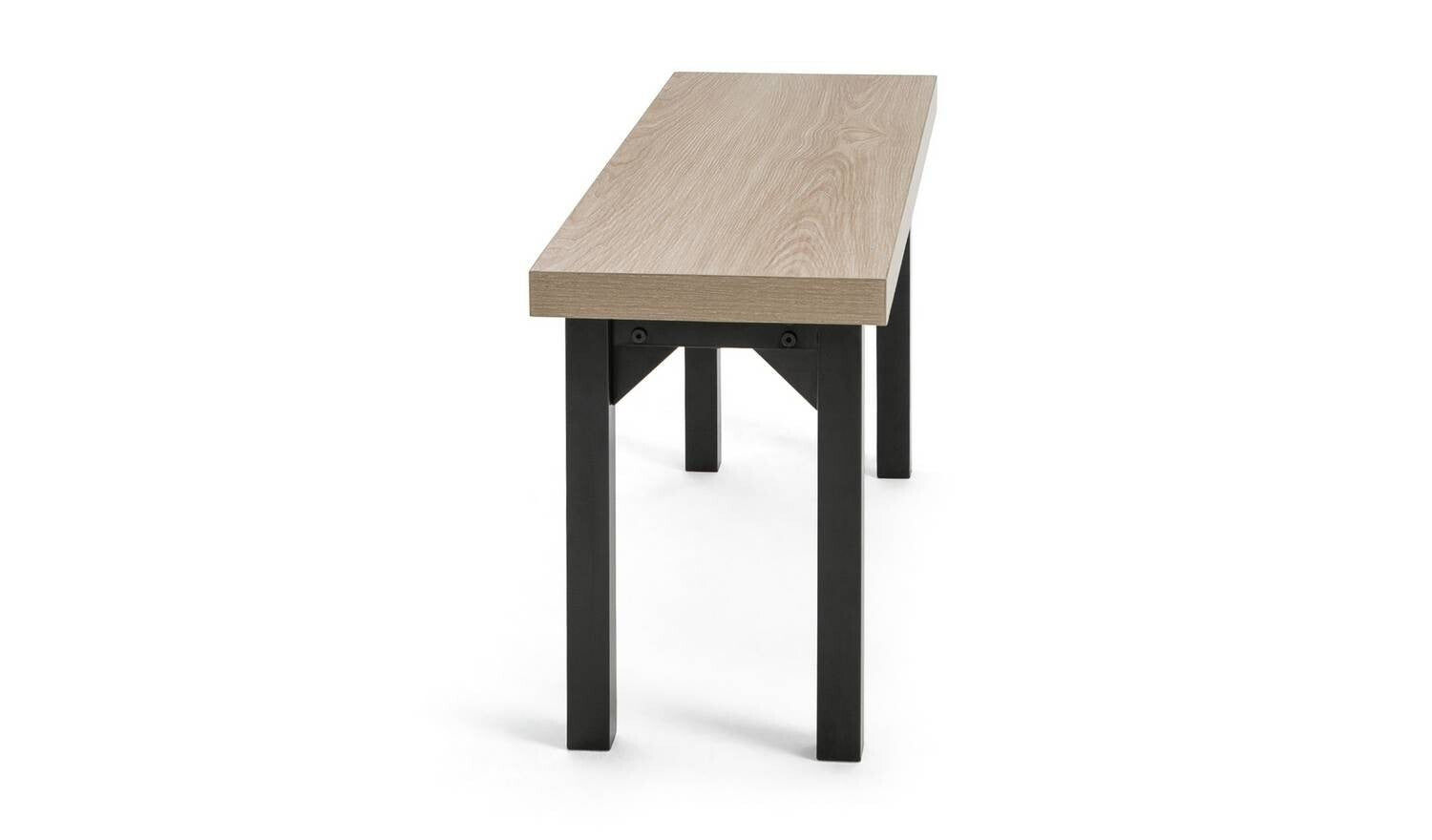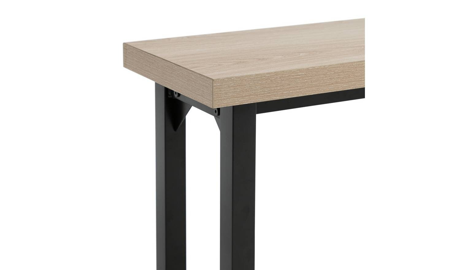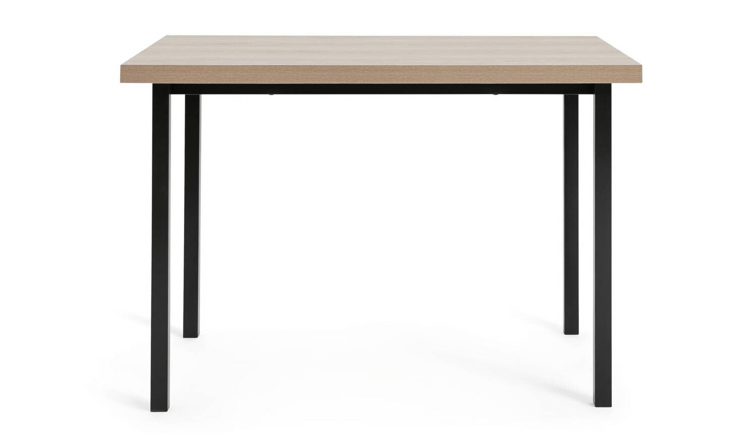 Wood effect table with metal legs.